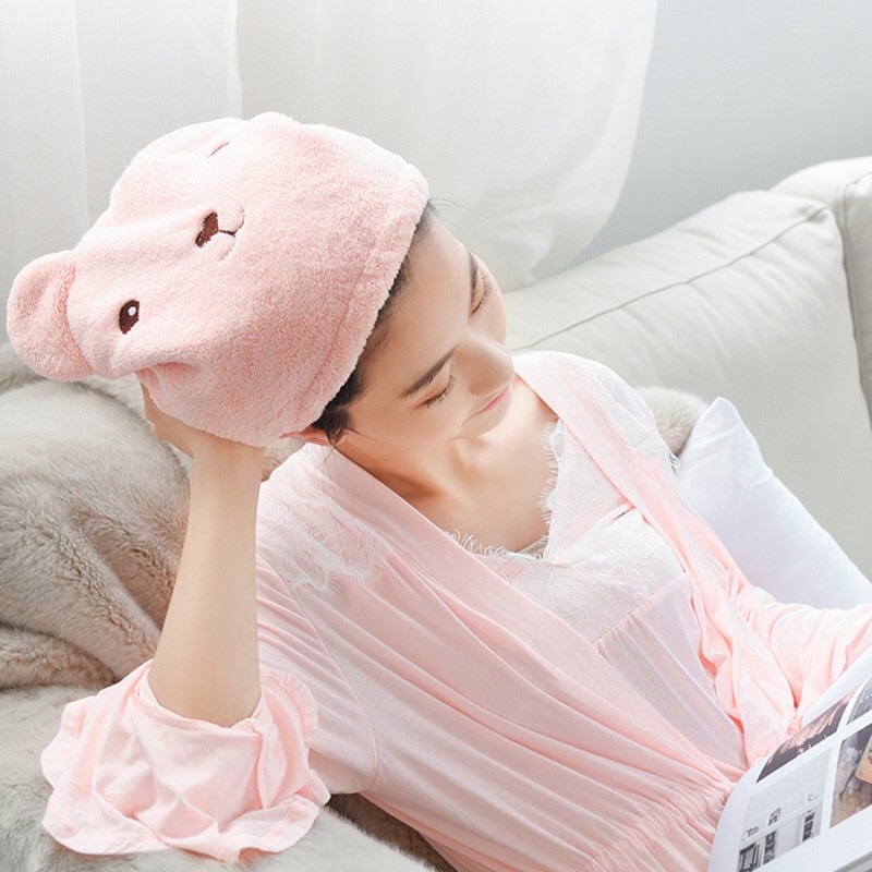 MŨ KHĂN TRÙM ĐẦU LÀM KHÔ TÓC SIÊU THẤM HÚT HÌNH GẤU ĐÁNG YÊU 26CM