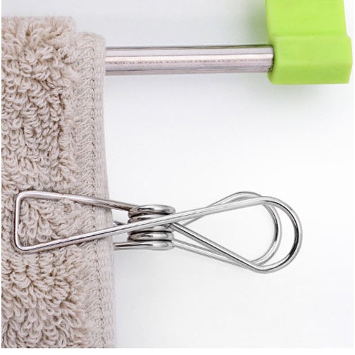 Kẹp quần áo inox không gỉ- Chất liệu inox không lo han gỉ mọi thời tiết, giúp giữ chặt quần áo khi phơi.