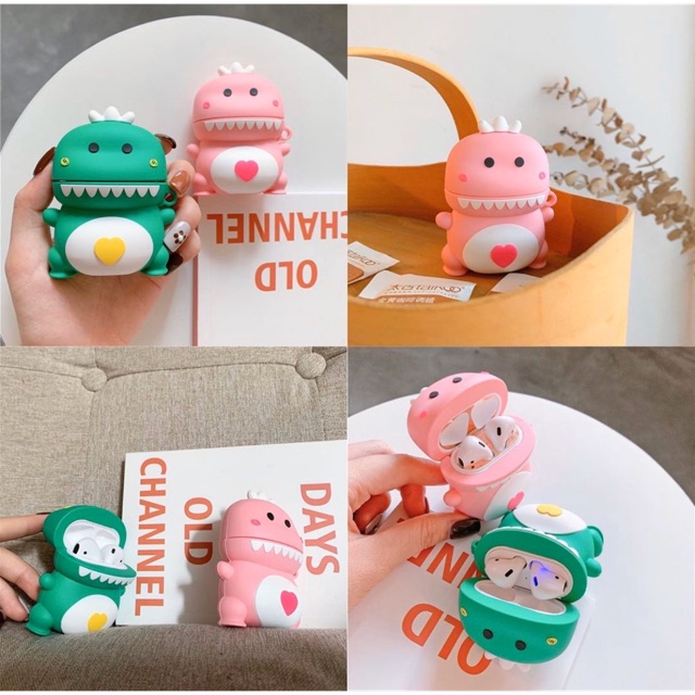 Giới thiệu [MUA CHO ĐỦ FREESHIP] Case Airpods khủng long đôi xanh/hồng