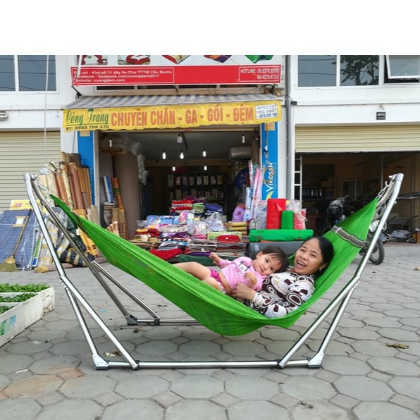(mua kèm deal sốc ) VÕNG XẾP TRƯỜNG NGA KHUNG INOX PHI 32 NGƯỜI LỚN