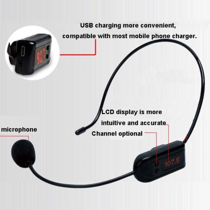 Microphone không dây gài tai FM - Dùng cho các máy trợ giảng, Hướng dẫn viên, Nhân viên bán hàng. Chất lượng rất ổn địnhPin khi sạc đầy có thể hoạt động cả ngày. Được hỗ trợ sử dụng Micro không giúp cho người sử dụng cảm thấy luôn thoải mái khi sử dụng, không còn cản trở vướng víu bởi dây của micro như trước nữa.