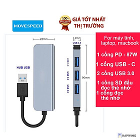 Đến nơi bánMua HUB Type C và HUB USB 3.0 tốc độ cao Move Speed cổng chia usb mở rộng kết nối chuyển đổi cho Macbook Laptop PC - hàng chính hãng
