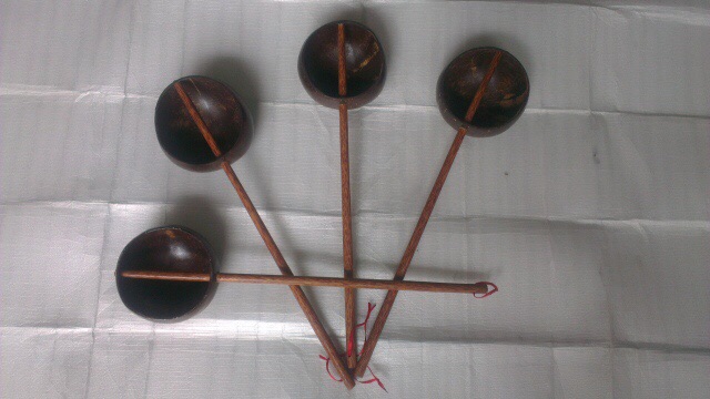Dài 40cm,đường kính 12cmChất liệu :gáo dừa,gỗ dừa.
