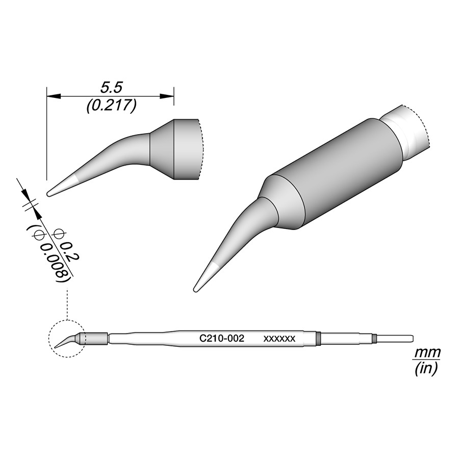 Mũi hàn jbc đầu cong mã C210-002 chuyên dụng cho hàn JBC hoặc hàn Sugon ST26 (thường là các tay hàn JBC T210-A)Sử dụng công nghệ độc quyền của hãng JBC