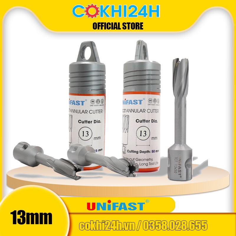 Mũi khoan từ rút lõi phi 13mm Unifast HSS 13x25 / TCT 13x35 / TCT 13x50