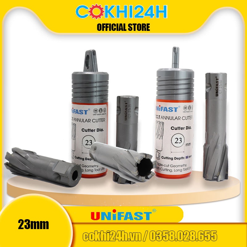 Mũi khoan từ rút lõi phi 23mm Unifast HSS 23x25 / TCT 23x35 / TCT 23x50