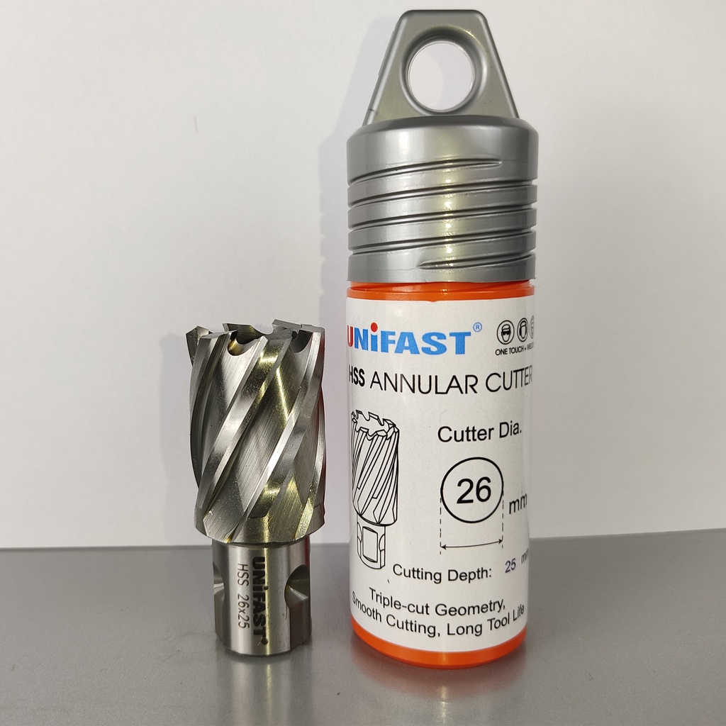 Nhà cửa & Đời sống > Dụng cụ & Thiết bị tiện ích > Dụng cụ > Hộp dụng cụ cầm tay || Mũi khoan từ rút lõi phi 26mm Unifast HSS 26x25 / TCT 26x35 / TCT 26x50Còn hàng