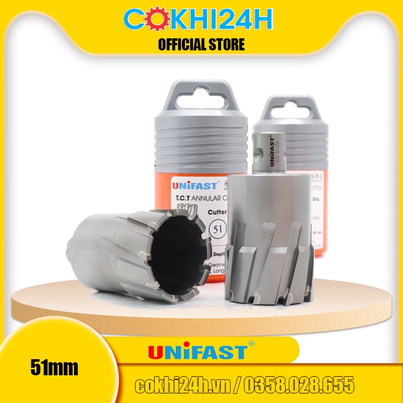 Mũi khoan từ rút lõi phi 51mm Unifast HSS 51x25 / TCT 51x35 / TCT 51x50 là dòng mũi cao cấp sản xuất theo tiêu chuẩn công nghệ của Nhật Bản. Mũi tạo ra đường kính lỗ 51mm, độ sâu khoét tối đa gồm các chuẩn 25mm, 35mm, 50mm, 75mm, 100mm.------------------------------------