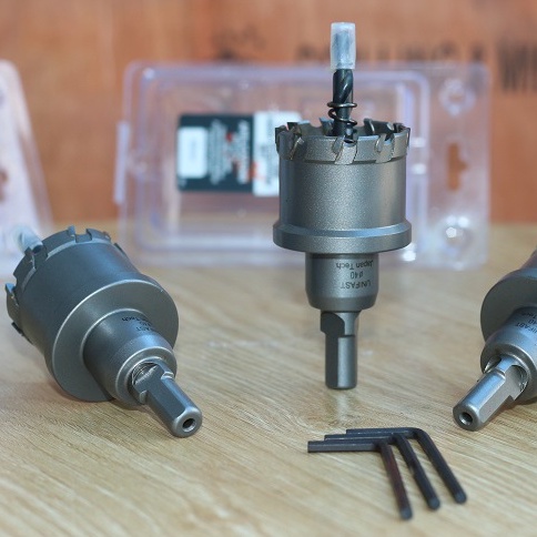 - Mũi khoét Unifast phi 40 có trang bị thêm một mũi khoan tâm 6mm giúp định vị chính xác lỗ khoan.