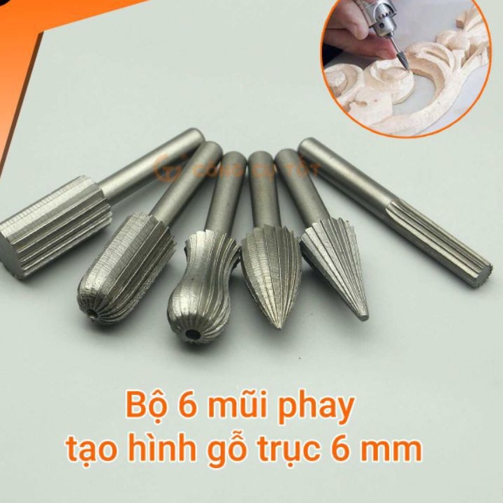 Mũi lũa làm mịn cod 6 li gồm 6 mũi với các đầu mũi có hình dạng và kích thước khác nhauDùng cho viêc tạo lũa tạo dáng cho cây cảnh cây bon sai