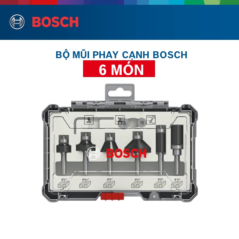 Nhà cửa & Đời sống > Dụng cụ & Thiết bị tiện ích > Dụng cụ > Hộp dụng cụ cầm tay || [Mã LIFEMALL253 giảm 100K đơn 250K] Bộ Mũi Phay Cạnh Bosch 6 MónCòn hàng