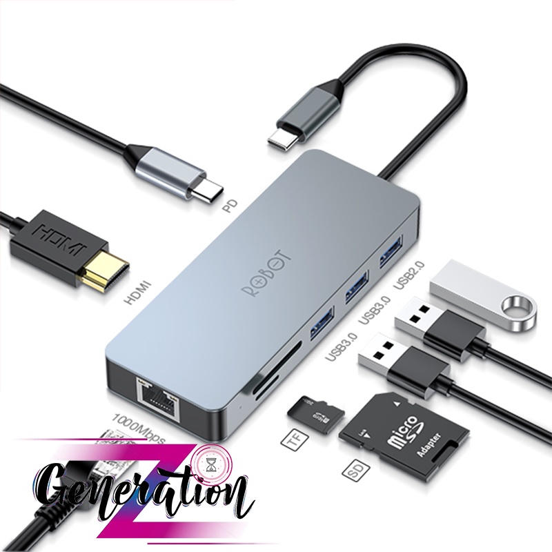 Máy tính & Laptop > Phụ Kiện Máy Tính > Bộ chia cổng USB & Đọc thẻ nhớ || MULTIPORT HUB TYPE-C 8 IN 1 HT380 - Bộ chuyển Type-C ra HDMI/PD/SD/TF/PD Cho Macbook, Matebook HT380Còn hàng