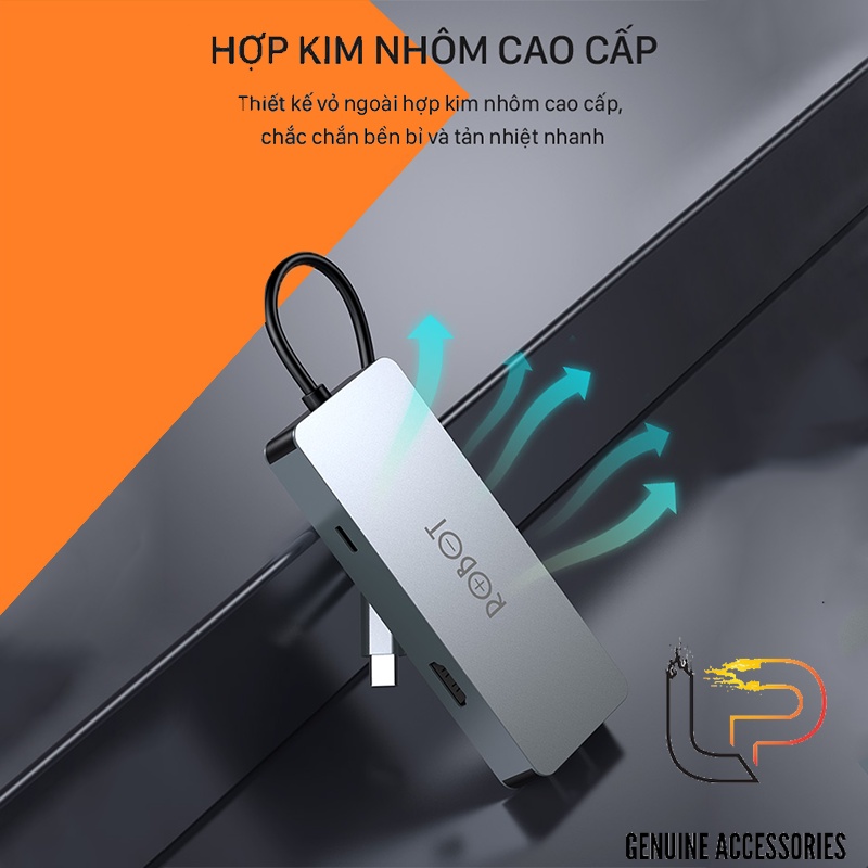 MULTIPORT HUB TYPE-C 8 IN 1 HT380 - Bộ chuyển Type-C ra HDMI/PD/SD/TF/PD Cho Macbook, Matebook HT380