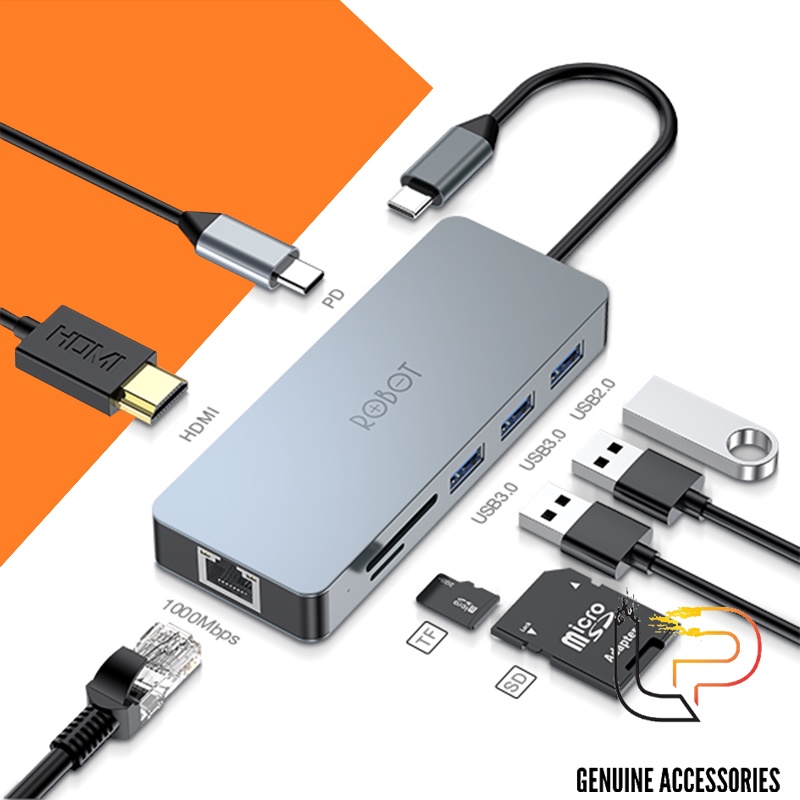 Máy tính & Laptop > Phụ Kiện Máy Tính > Bộ chia cổng USB & Đọc thẻ nhớ || MULTIPORT HUB TYPE-C 8 IN 1 HT380 - Bộ chuyển Type-C ra HDMI/PD/SD/TF/PD Cho Macbook, Matebook HT380Còn hàng