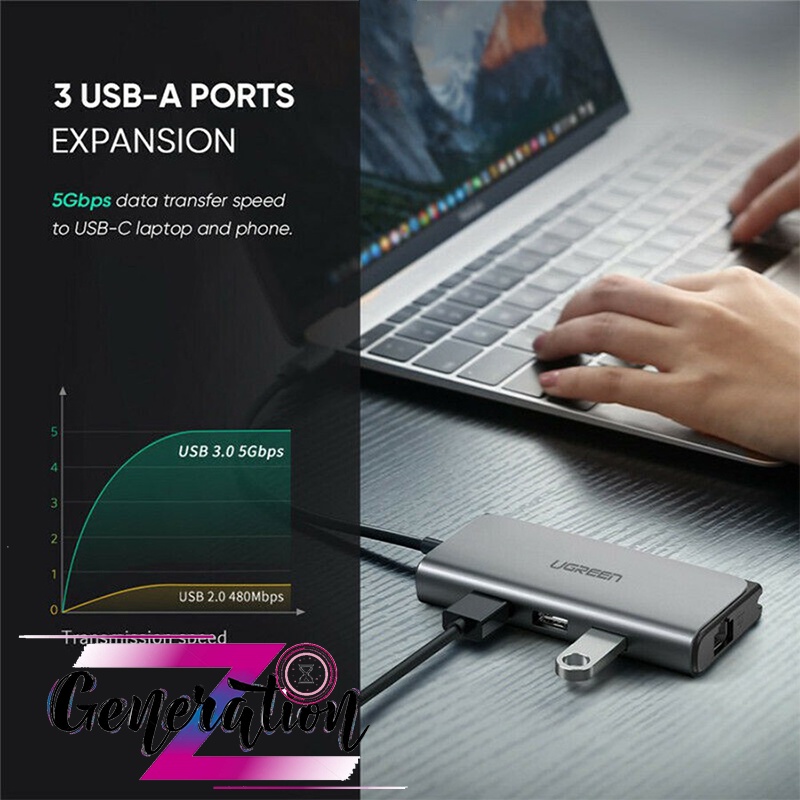 Giới thiệu MULTIPORT HUB TYPE-C RA 3 USB 3.0 + LAN UGREEN 50252 - HUB CHUYỂN TYPE-C RA 3 USB 3.0 + LAN UGREEN 50252