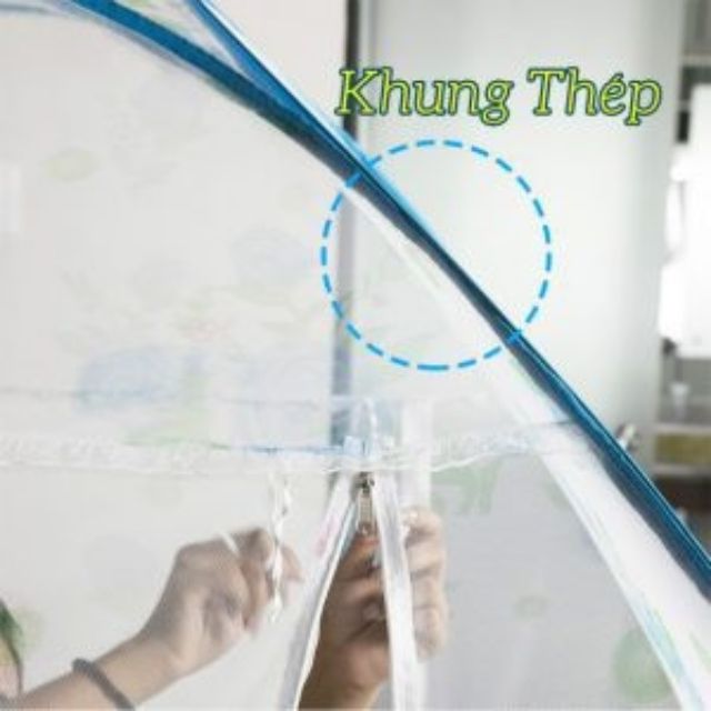 + Khung mùng được thiết kế bằng dây thép đặc biệt có độ cacbon cao, giúp dây thép vừa cứng lại có độ đàn hồi cao, tự định hình làm cho màn tự bung khi mở, uốn tròn khi xếp.