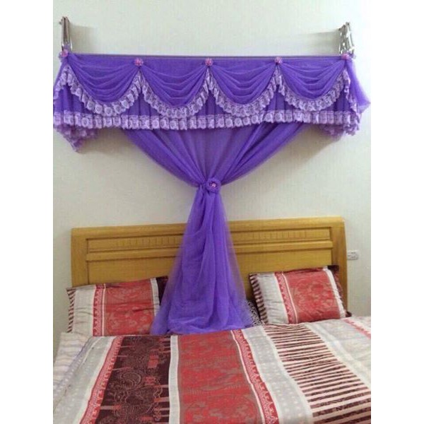 Khung dọc: Giường đặt ở vị trí giữa nhà , đầu giường sát tường, khung mùng cố định ở chiều rộng của giường .