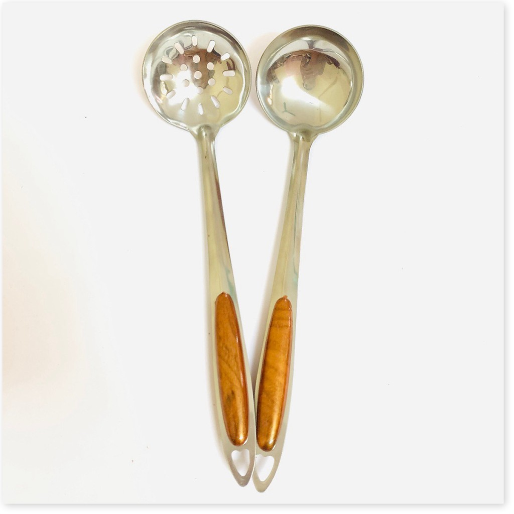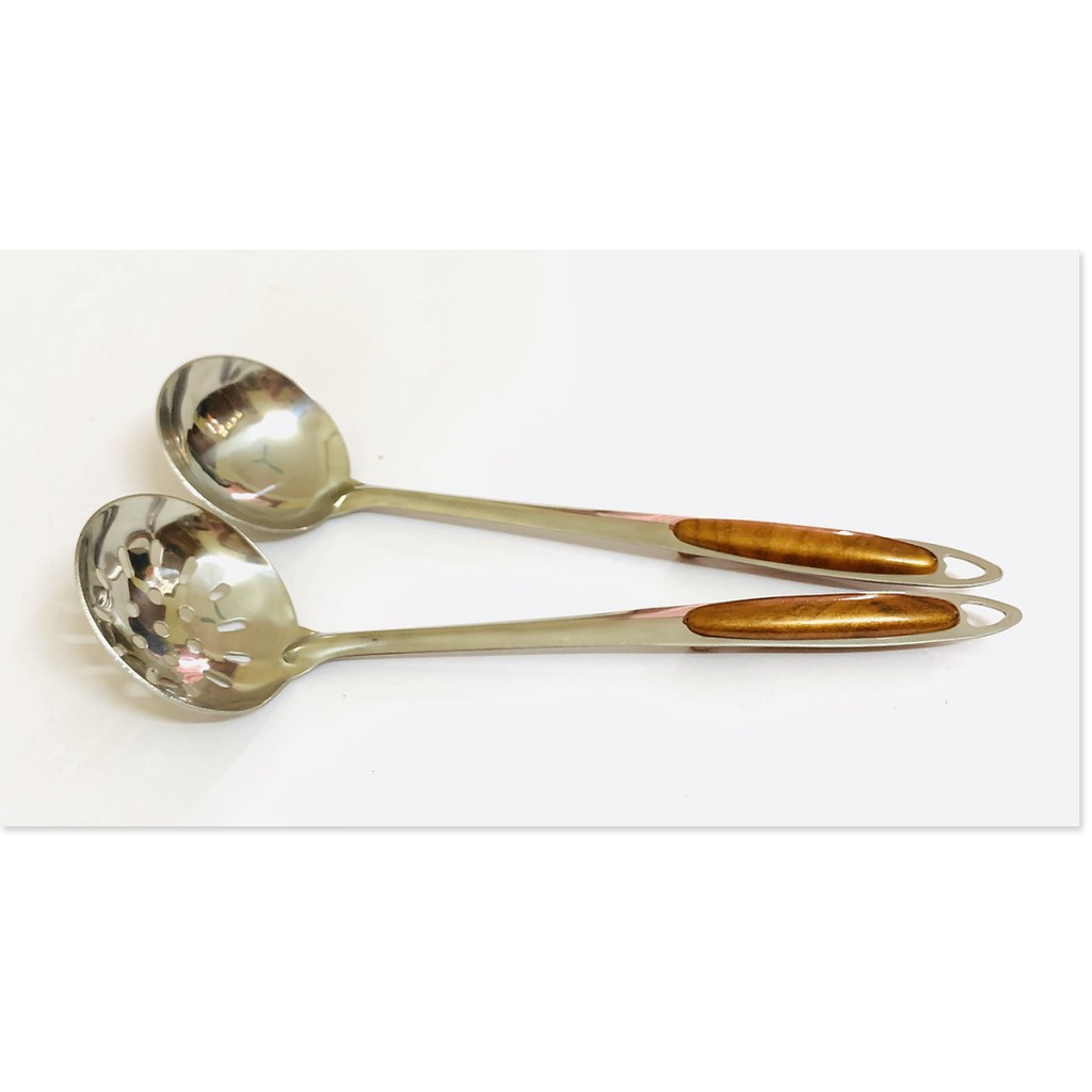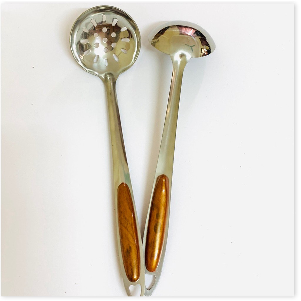 Bộ muôi canh muôi thủng inox cán ốp nâu 7x25cm