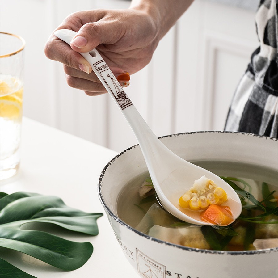 Nhà cửa & Đời sống > Bộ đồ bàn ăn > Bộ dao kéo || Muôi canh - muỗng múc canh sứ trắng tay cầm nhiều họa tiết cực xinhCòn hàng