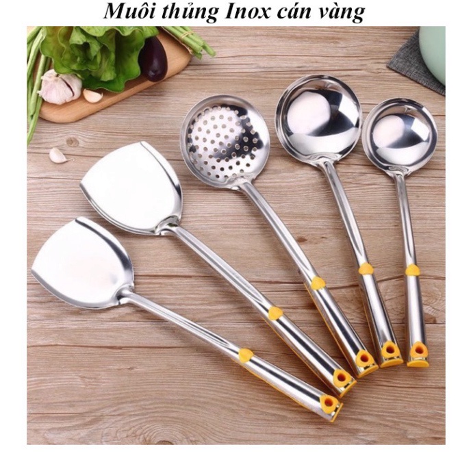 Bộ Muôi Inox Cao Cấp Cán Vàng ( Muôi Thủng - Muôi Canh - Xẻng Xào) siêu dày NB53
