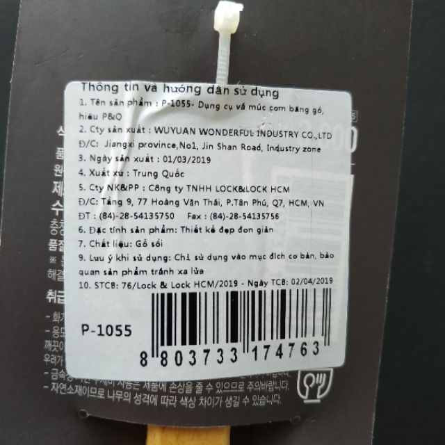 Muôi múc cơm bằng gỗ Lock&Lock P-1055Chất liệu : Gỗ sồi