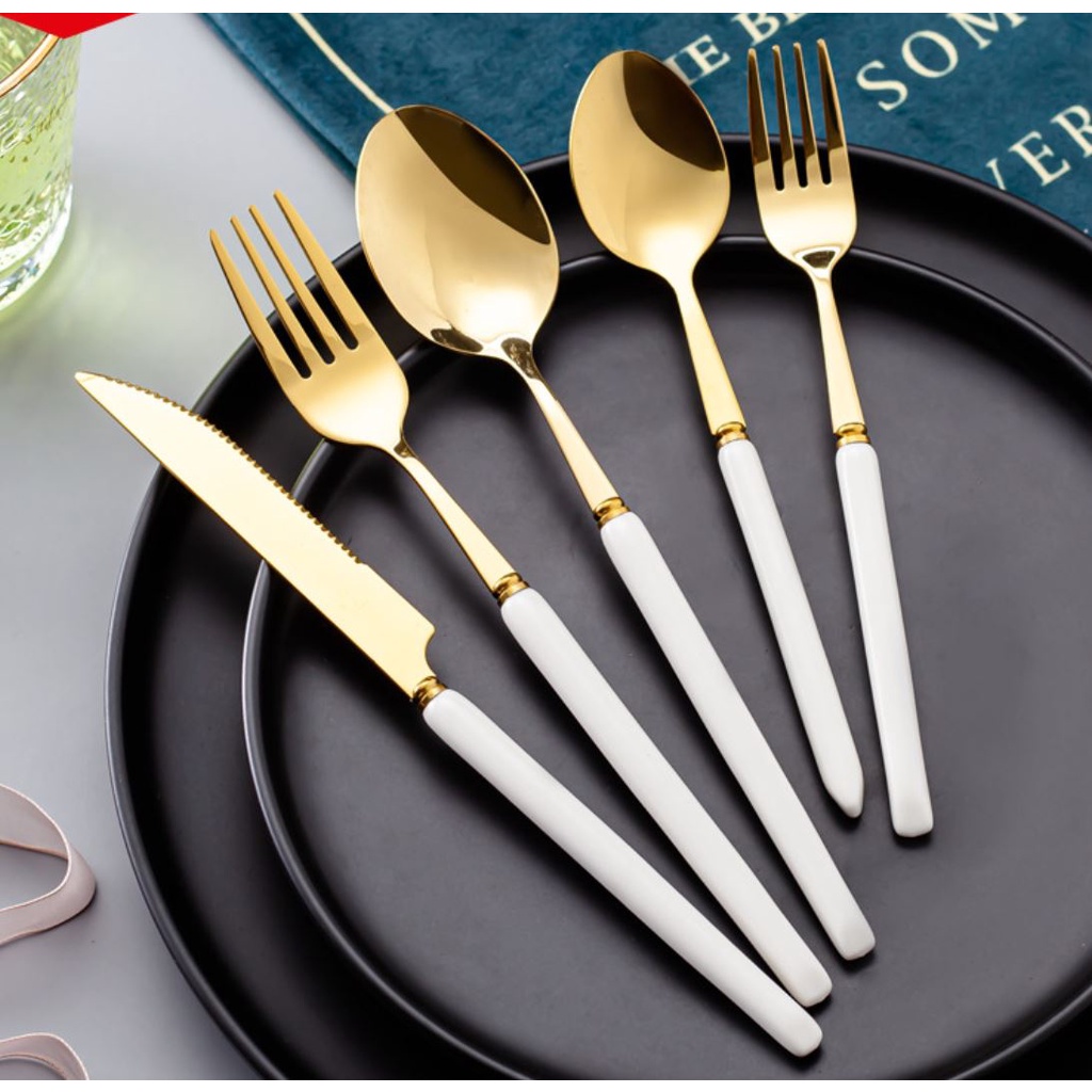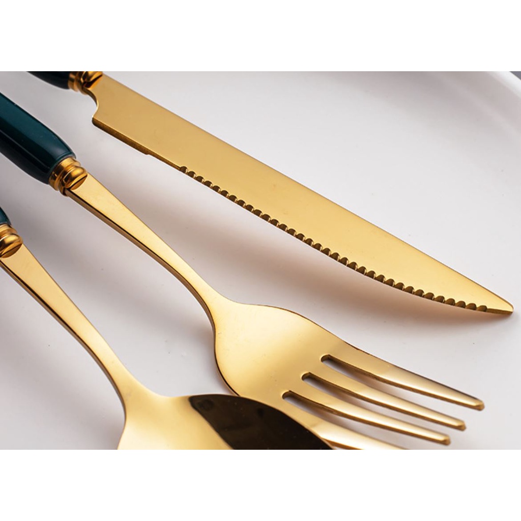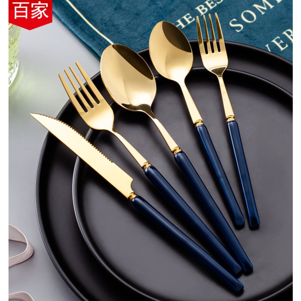 Nhà cửa & Đời sống > Bộ đồ bàn ăn > Bộ dao kéo || Muỗng Ăn Cơm. Thìa Ăn Cơm Bằng Inox Mạ Vàng Cán Bằng Đá sang trọng. Thìa Ăn Cơm.Còn hàng