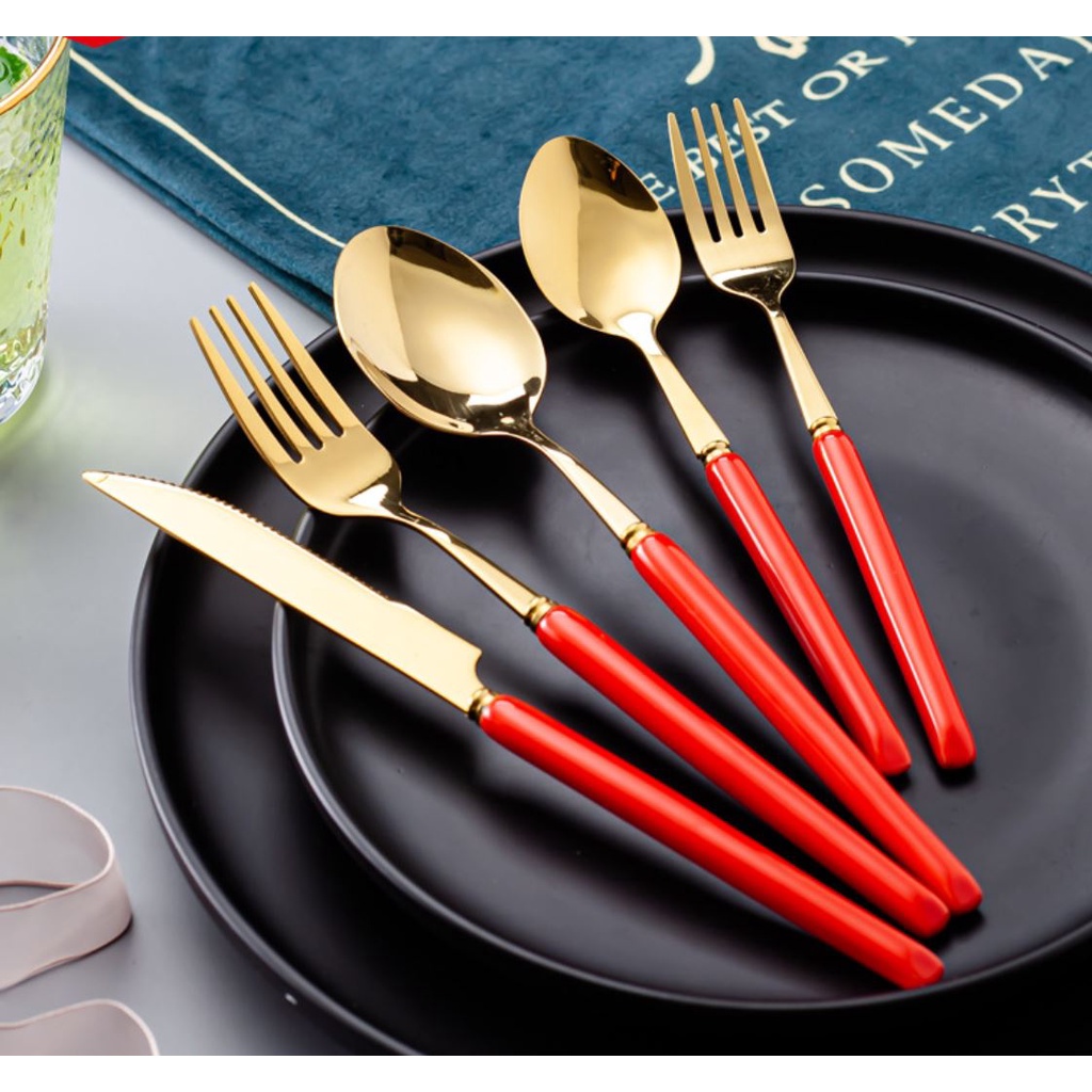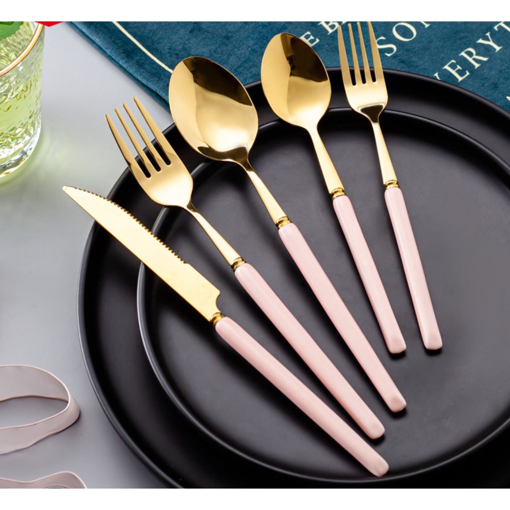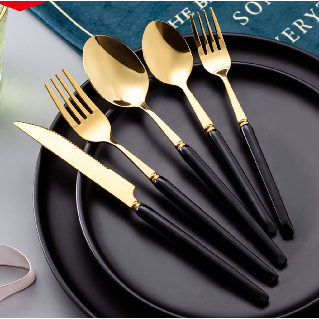 Nhà cửa & Đời sống > Bộ đồ bàn ăn > Bộ dao kéo || Muỗng Ăn Cơm. Thìa Ăn Cơm Bằng Inox Mạ Vàng Cán Bằng Đá sang trọng. Thìa Ăn Cơm.Còn hàng