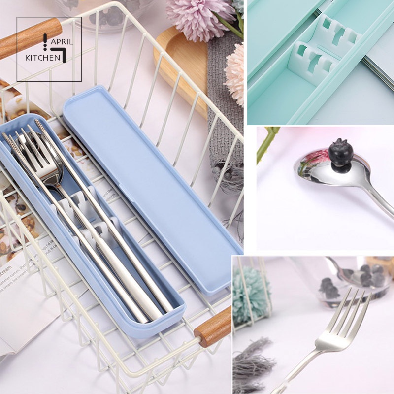 Chất liệu: muỗng, đũa, nĩa inox và hộp đựng nhựa PP