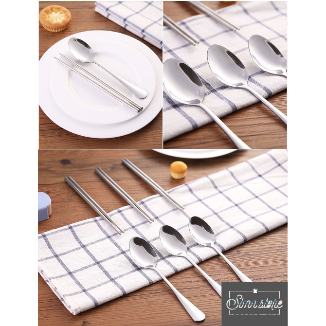 Bộ muỗng đũa INox cao cấp, muỗng đũa du lịch siêu nhẹ chỉ 68gam, bộ thìa nĩa đũa du lịch cơm trưa văn phòng.Slmn_BMDInox