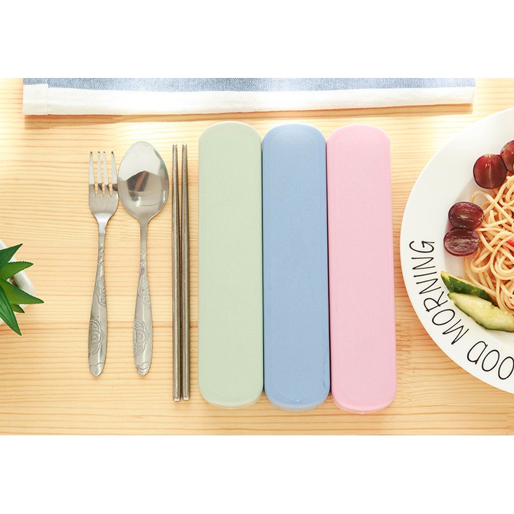 Chất liệu: Muỗng đũa nĩa bằng Thép không gỉ, Hộp bằng nhựa PP.