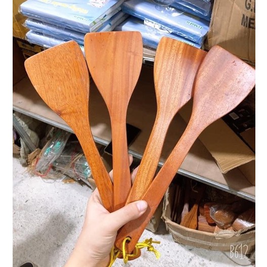 - Muỗng được làm từ gỗ tự nhiên, thiết kế cán dài phú hợp để xào nấu.
