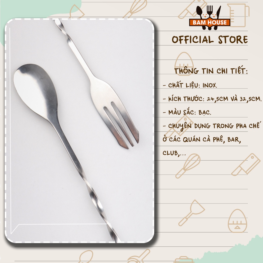 Muỗng khuấy inox pha chế quầy bar Bam House 2 đầu cao cấp MKQB01– Barspoon