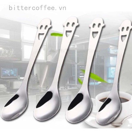 Muỗng thìa cà phê Inox cán cầm hình mặt cười độc đáo dễ thương dùng ăn dặm, uống trà