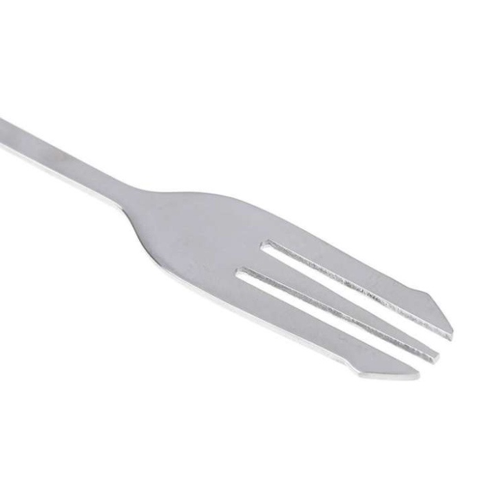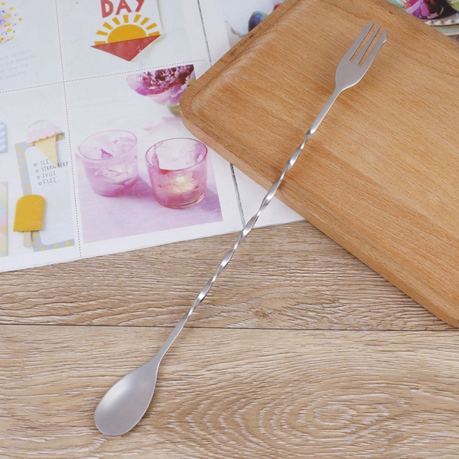 - Thiết kế của muỗng có một đầu là dạng thìa để khuấy, một đầu là thanh nhọn để có thể ghim trái cây.