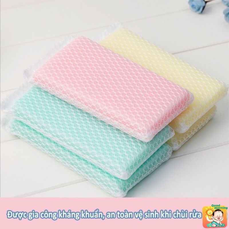 - Đặc tính: mút rửa bát có độ bền cao, sử dụng được trong thời gian dài do miếng xốp đc bọc trong lưới có khả năng chịu ma sát tốt.