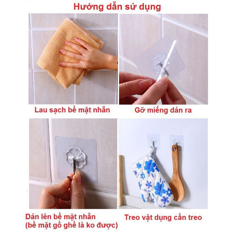 Móc dán tường chịu lực siêu bền ( Lưu ý : Sản phẩm sử dụng tốt khi dán lên bề mặt nhẵn nhé vì dụ, gương, gạch bông, kính, nhôm, đá...) - Chắc hẳn bạn đã có nhiều lúc phát bực vì đồ đạc nhà mình bừa bộn, dọn chỗ này lại bừa chỗ kia. Và chắc bạn cũng đã từng bực mình khi sử dụng miếng móc dán hút chân không hay miếng móc dán thông thường khác, nhưng sử dụng chẳng được lâu và không treo được đồ vật nặng. - Tất cả những điều đấy bạn không cần phải bận tâm nữa , vì đã có móc dán tường chịu lực siêu bền lên đến 6kg, một sản phẩm siêu hot trên thị trường trong thời gian gần đây với một mức giá siêu rẻ mà shop đang ưu đãi mọi người. - Hãy tưởng tượng căn nhà bạn sẽ trở nên gọn gàng thế nào nếu bạn có thể tận dụng bất cứ vị trí nào trên tường nhà bạn để treo đồ. Một chiếc xoong, một chiếc chảo được treo gọn gàng trên tường nhà bếp cũng khiến căn bếp nhà bạn trở nên ngăn nắp dễ chịu hơn rất nhiều. Hãy dùng ngay móc dán tường siêu bền để tiết kiệm thời gian dọn dẹp bạn nhé. Móc dán siêu dính, siêu chắc" hay còn lại là móc dán thần thánh đây ạ. Nó dính chắc kinh khủng luôn, ko hiểu nó có chất gì mà dính còn chắc hơn cả keo 502 treo đồ nặng 5-10kg thoải mái).Giá TXT