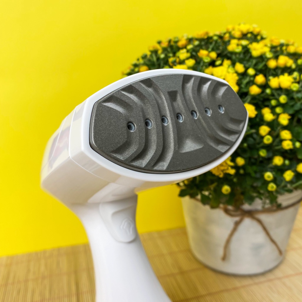 Công nghệ phun hơi tiên tiến giúp nhanh chóng là phẳng quần áo nhanh gấp nhiều lần so với bàn ủi thông thường. Nặng 0.9kg.