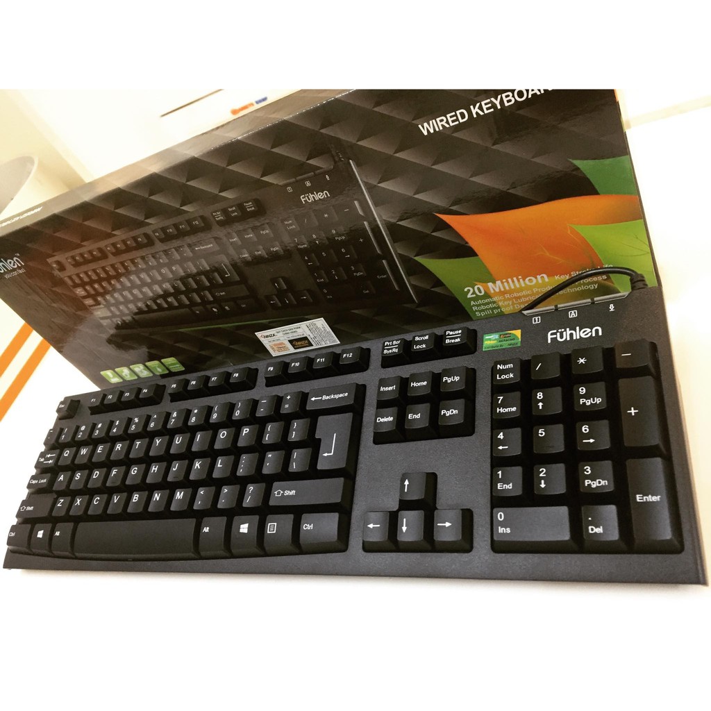 Bàn phím máy tính Fuhlen được trang bị các phím nhấn khá sắc sảo, tạo cảm giác êm ái và giảm thiểu tiếng động khi đánh văn bản. Ngoài ra, các kí tự trên bàn phím được in to, rõ ràng, màu trắng nổi bật trên nền phím đen, rất dễ nhận biết. được thiết kế thân thiện với người sử dụng, phím bấm có độ nảy, rất nhạy.