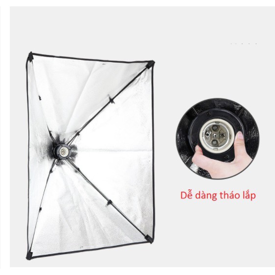 Bộ Đèn Studio Chụp Ảnh Sản Phẩm Chân Đèn 2m Kèm Softbox 50x70 Hỗ Trợ SángBộ đèn hỗ trợ từ 1 đến 4 đui bóng cỡ đui E27