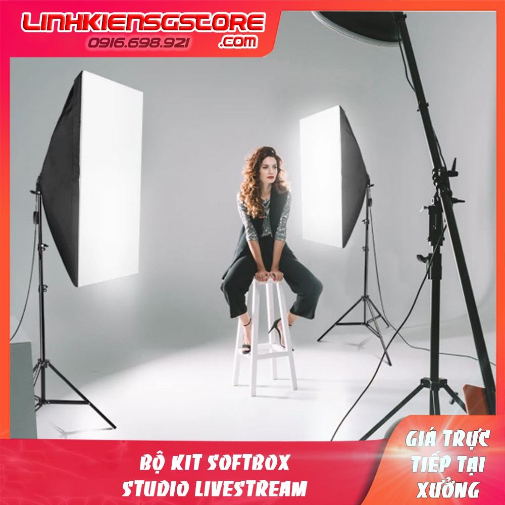 Bộ đèn studio kèm softbox 50x70 có chân đèn, hỗ trợ hắt sáng chụp ảnh sản phẩm (Không bóng đèn)
