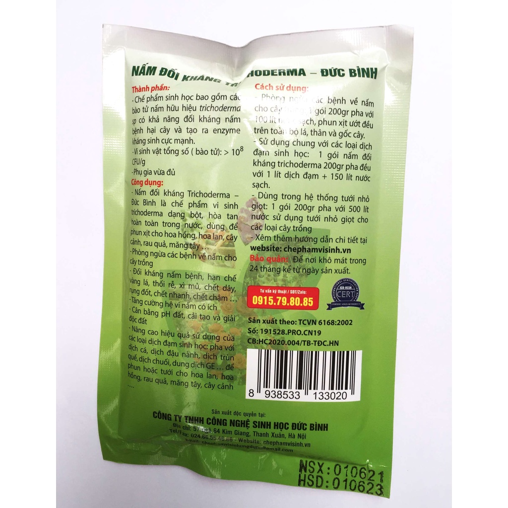 NẤM ĐỐI KHÁNG TRICHODERMA BACILLUS 200g ( Chuyên dùng để ủ phân hữu cơ và kiểm soát nấm bệnh)