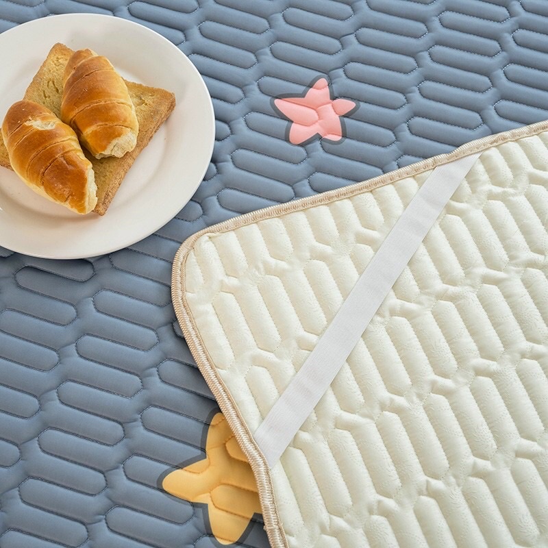 🍀 Mặt sau có các hạt cao su bám đệm chống trơn trượt và chun gài cố định các góc