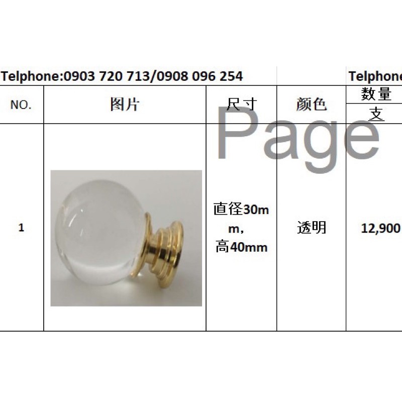 Tay nắm trân châuChất liệu: đế là sắt , trân châu là thuỷ tinh trong suốt