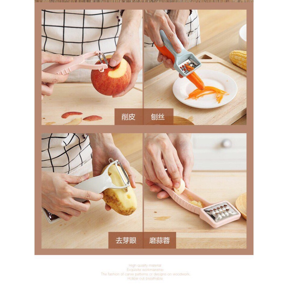 Nạo Củ Quả 2 Đầu Lúa Mạch 4 Chức Năng Thông Minh Nạo Vỏ, Bào Sợi, Bào Củ Siêu Tôc