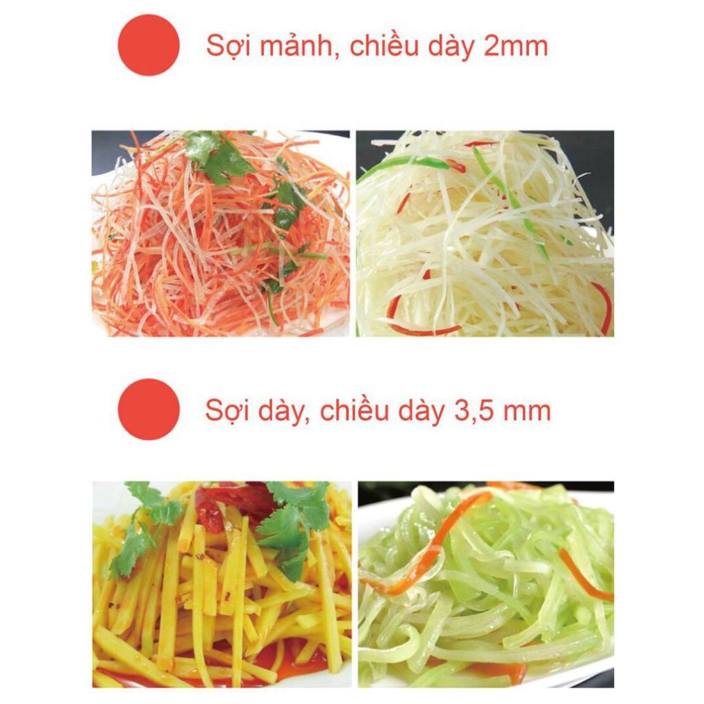 -Và sản phẩm nạo hoa quả có đến 4 chức năng cho chị em có thể thoải mái lựa chọn kiểu gọt , nạo , lát mỏng để trang trí cho bữa ăn thêm phần bắt mắt