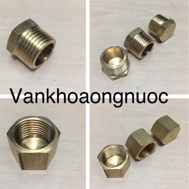 Nắp bịt ren trong, nút bịt ren ngoài dùng để bịt lại đầu đường ống cuối hoặc không dùng đếnChất liệu : đồng thau dày đẹp