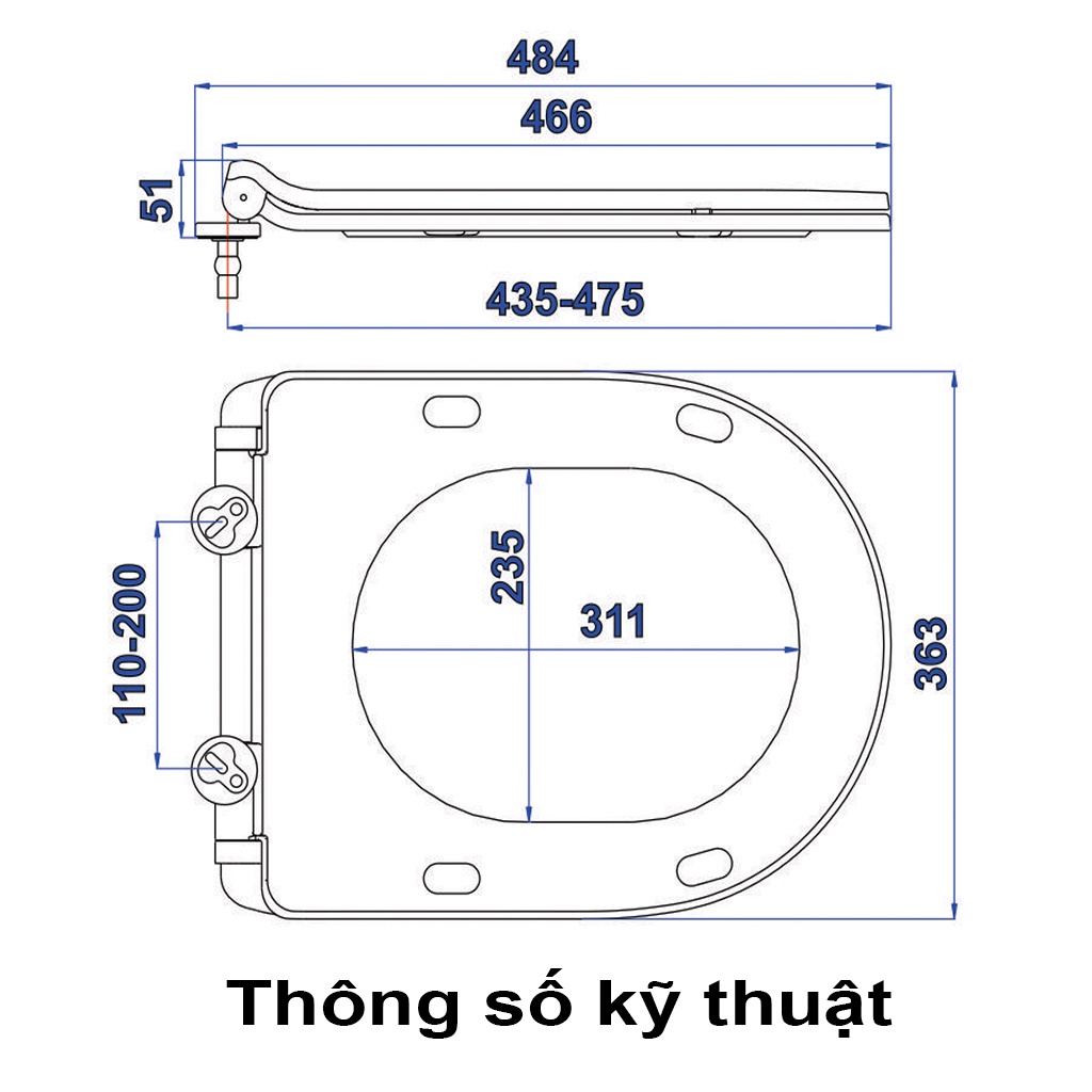 Sản phẩm có thông tin kích thước ̣( trên hình ), quý khách vui lòng tham khảo hoặc liên hệ shop để được tư vấn chính xácLoại nắp kiểu vuông, phù hợp sử dụng thay thế cho các mẫu bồn cầu hình vuông thế hệ mới