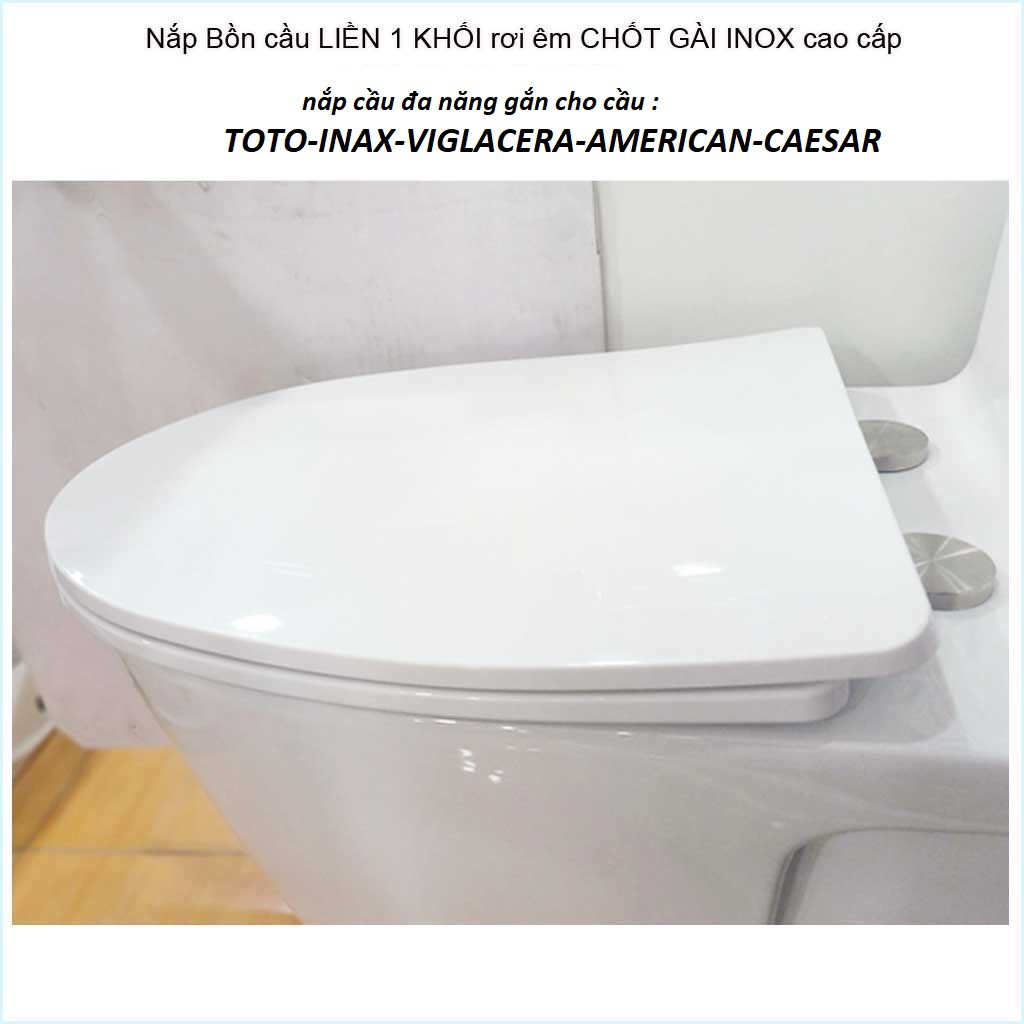 Nắp đậy bàn cầu 1 khối rơi êm, nắp thay thế bồn cầu khối liền khối Viglacera, American,Caesa,Toto
