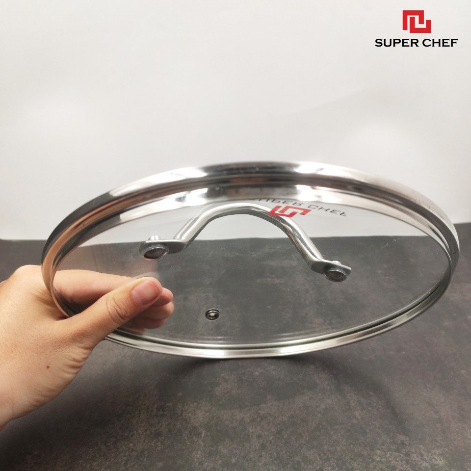 Giới thiệu Nắp Nồi Chảo Kính Cường Lực Vành Inox Tròn Super Chef