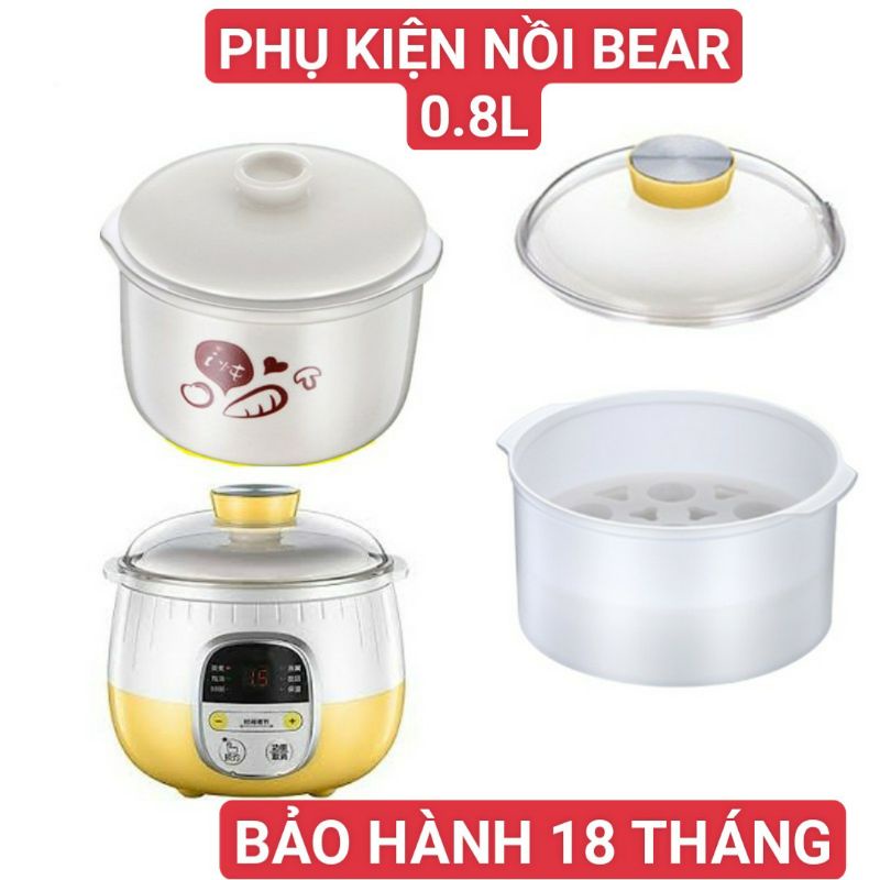 Nắp, xửng hấp, thố sứ, nồi nấu cháo Bear 0.8l - Phụ kiện chính hãngNồi Bear đã quá quen thuộc với chị em bỉm sữa, là sản phẩm ưu việt, giúp công việc nấu cháo cho bé nhàn hơn